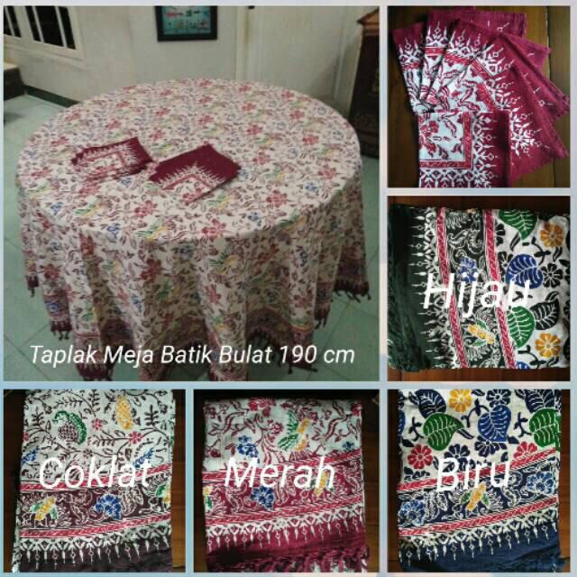 TAPLAK MEJA MAKAN BULAT 6 KURSI BATIK MOTIF CUIRI - BIRU