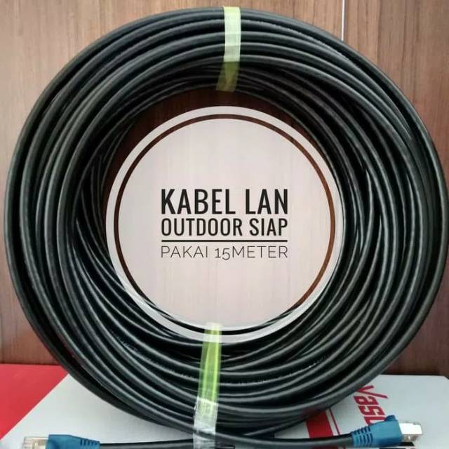 FLASH SALE Kabel Lan Outdoor 15 Meter FTP CAT6 Siap Pakai Dicrimping rj45 besi dan plugbooth Vascolink Hitam