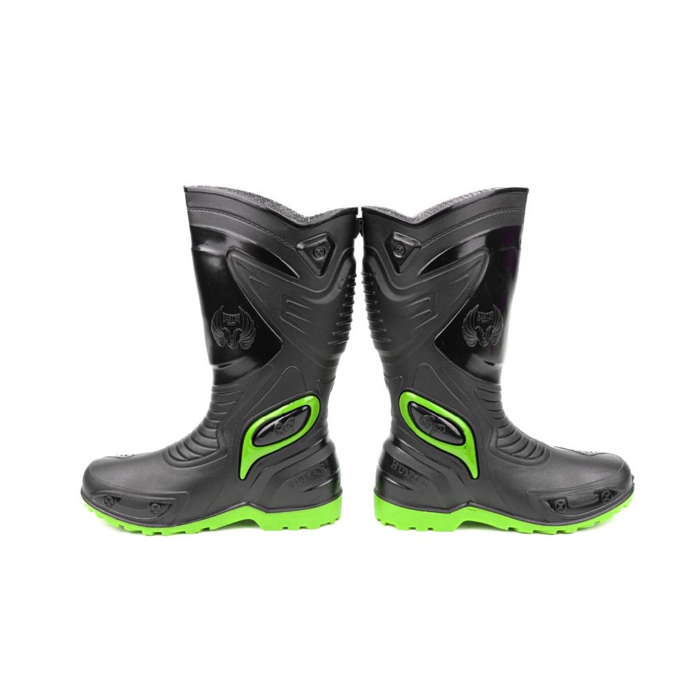 Sepatu Boot Tinggi HUNTER GP 1 Hitam Hijau Boots Karet Lokal Lentur Ringan Anti Air & Slip Touring