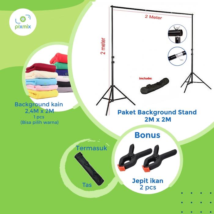 BACKGROUND STAND 2 X 2 METER | PAKET DENGAN BACKGROUND KAIN 2 X 2,4 M - BK01. YELLOW