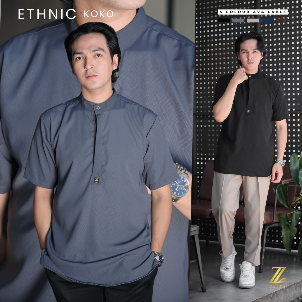 Zahier Koko Kurta Embos Ethnic Modern Exclusive Cotton Premium Motif Lengan Pendek Thobe Muslim Pria