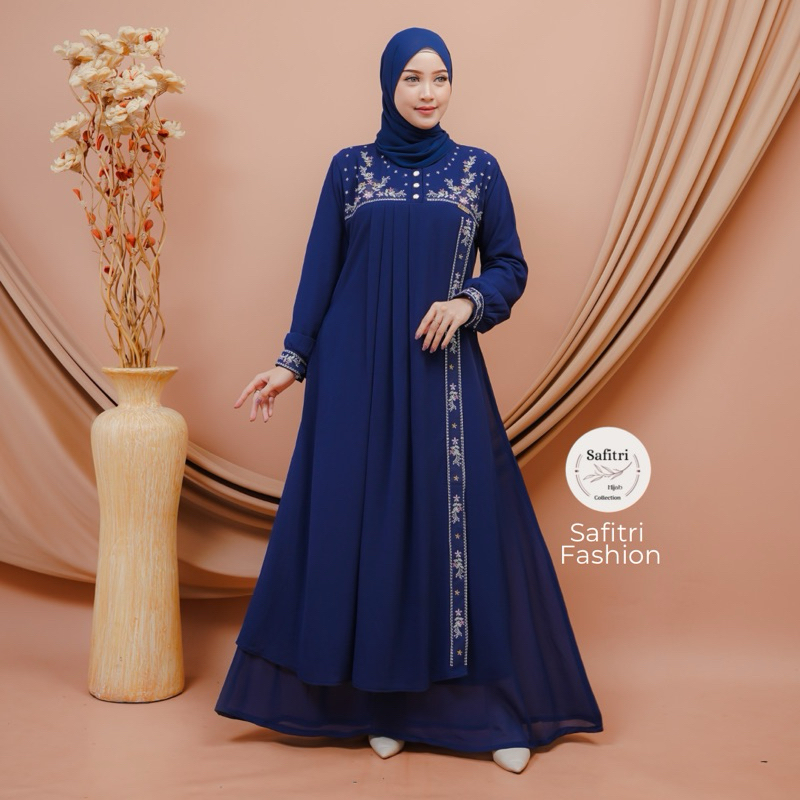 JASMINE DRESS Gamis bahan ceruty babydol kombinasi bordir mewah kondangan pesta lebaran manasik haji umroh ihram fashion muslim luxury by Safitri Fashion