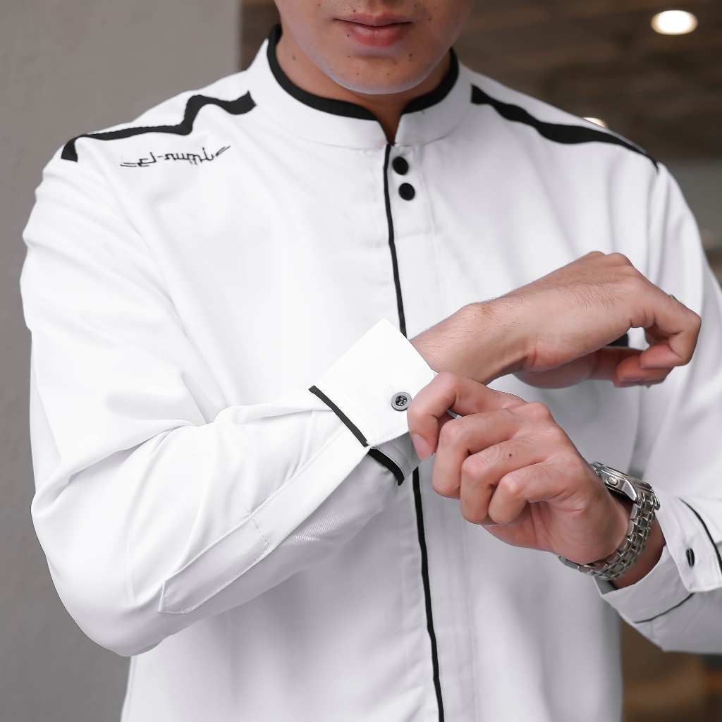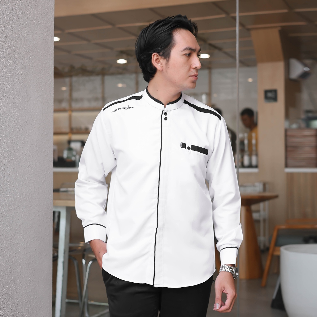 Baju Koko Pria Elrumi Lengan Panjang Motif Yisunsin Warna Putih