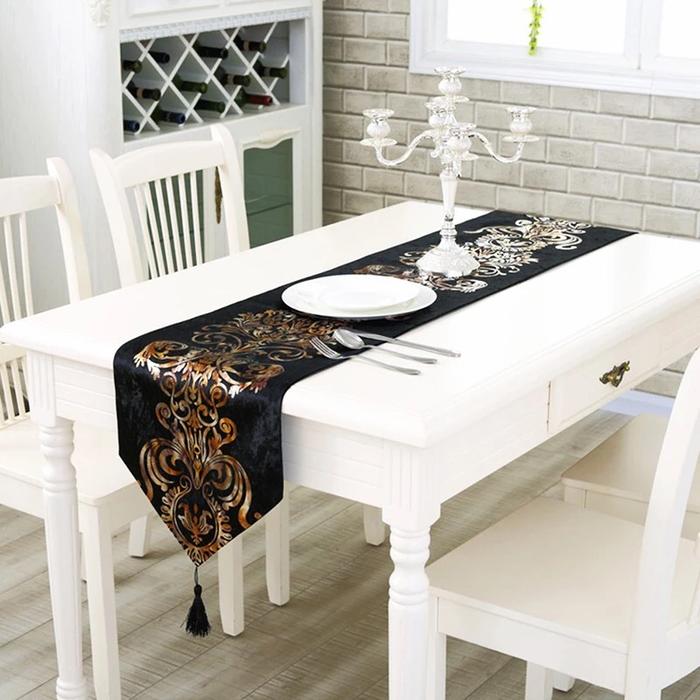 TABLE RUNNER / BED RUNNER - TAPLAK PANJANG - LUXURY - BLACK - 33X210CM