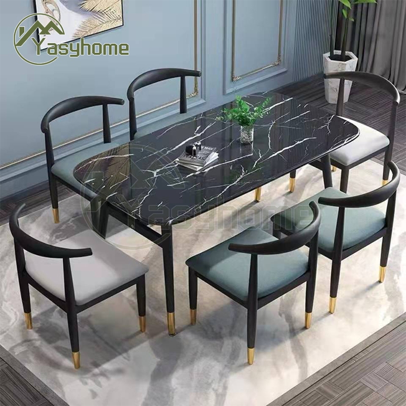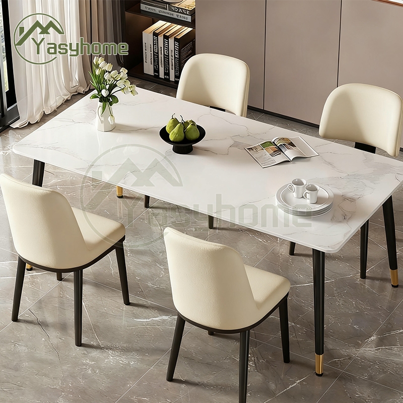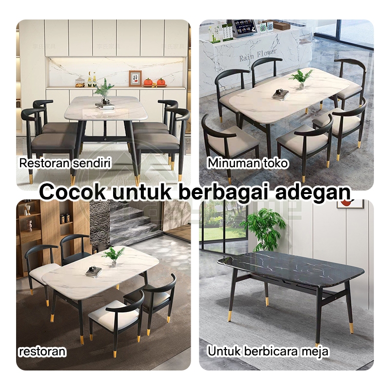 140cm Set Meja Makan 4 Kursi Marble Meja Makan Persegi Panjang Besar Ruang Belajar Minimalis cbl