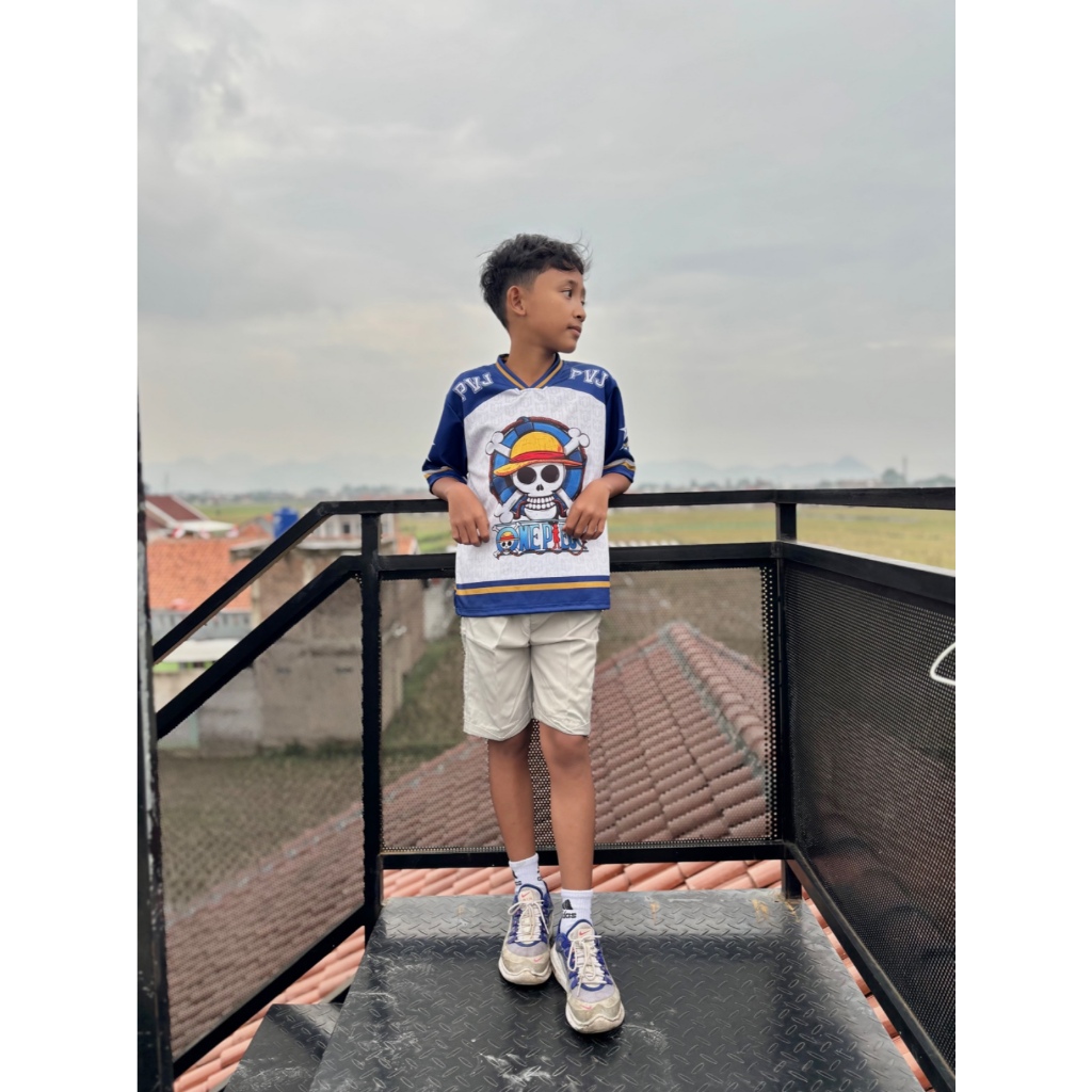 PVJ | Kaos Jersey Olahraga Futsal Baju Baseball Anak Gambar One Piece Custom Print Nama