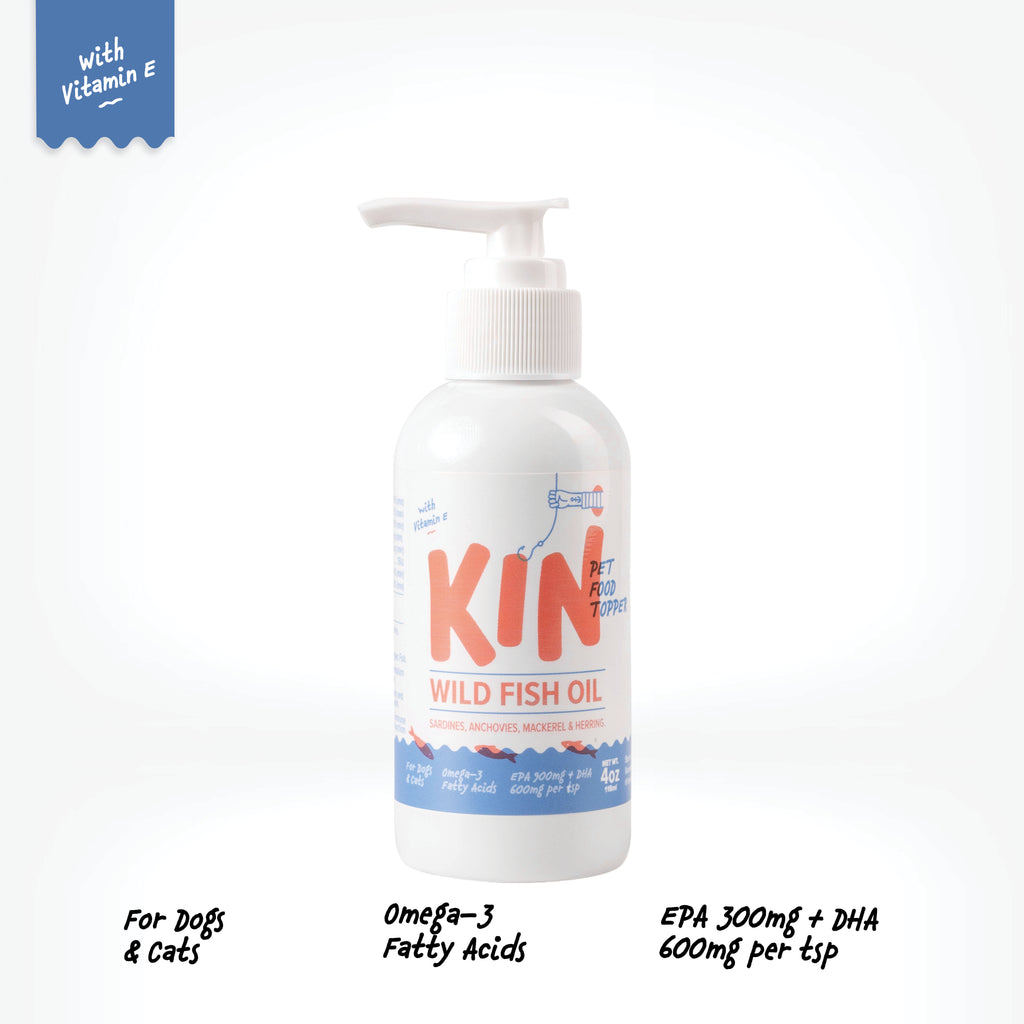 KIN Dog Food - Wild Fish Oil 4oz-16oz, Vitamin E