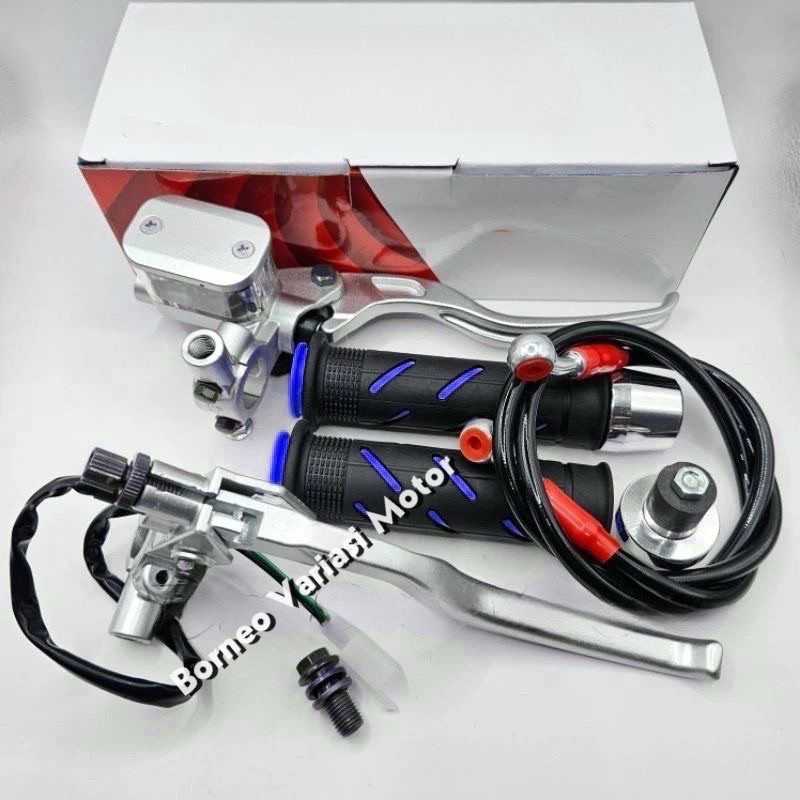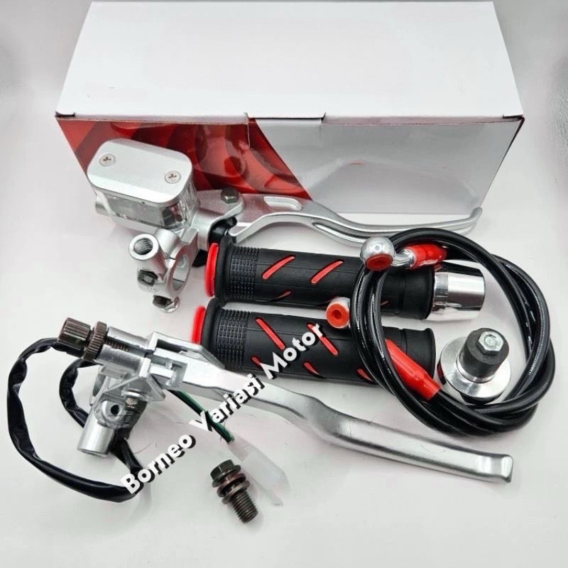 Paket 4in1 Master Rem Tabung Tipe Kotak Silver + Handgrip Sisik + Jalu Stang Chrome + Selang Rem 95cm Universal Xin Xin