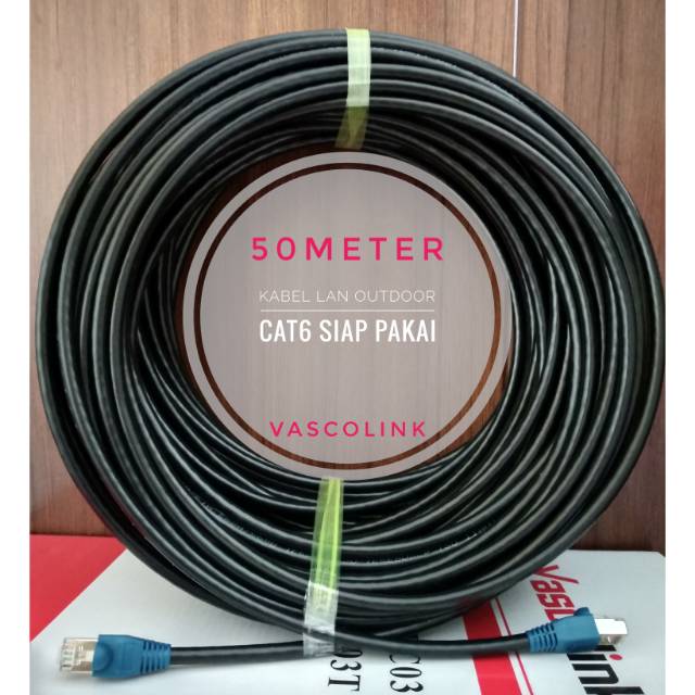 FLASH SALE Kabel Lan Outdoor 50 Meter FTP CAT6 Siap Pakai sudah dicrimping rj45 besi dan plugbooth Vascolink