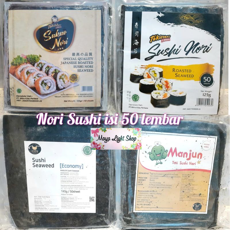 Nori sushi 50 lembar manjun tokinori sakao sushi nori halal murah kimbap bento onigiri seaweed rumput laut kering gimbap