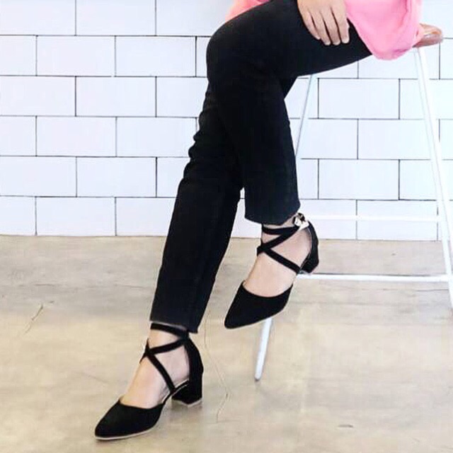 Gladiator Dranatha Heels Wanita Hitam Suede 5cm