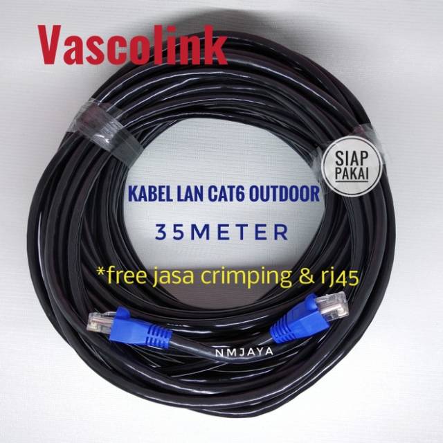 FLASH SALE Kabel Lan Outdoor 35 Meter FTP CAT6 Siap Pakai Dicrimping rj45 besi dan plugbooth Vascolink Hitam