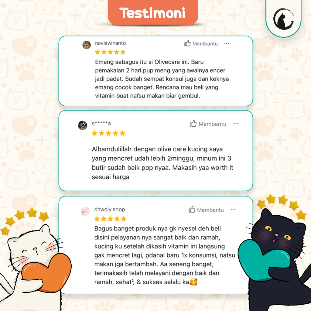 Olive Care Vitamin Kucing MASALAH PENCERNAAN untuk Diare, Mencret, Pup Berdarah dan Radang Usus