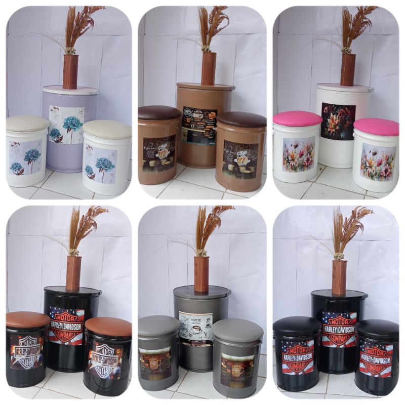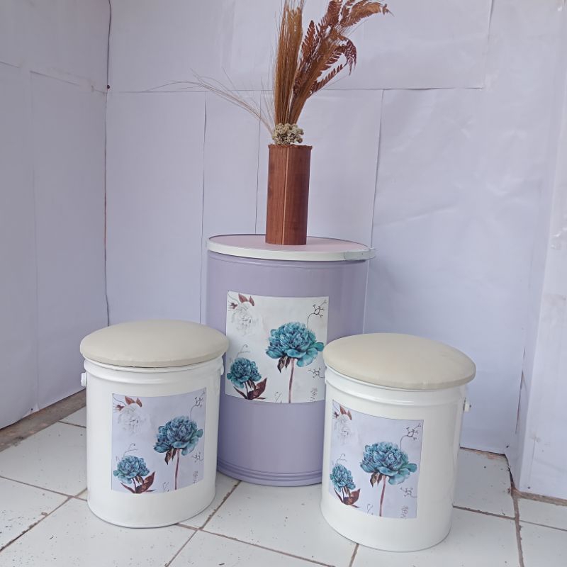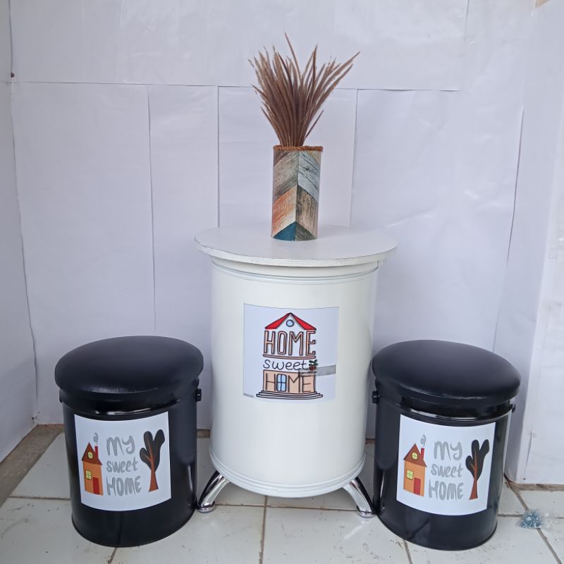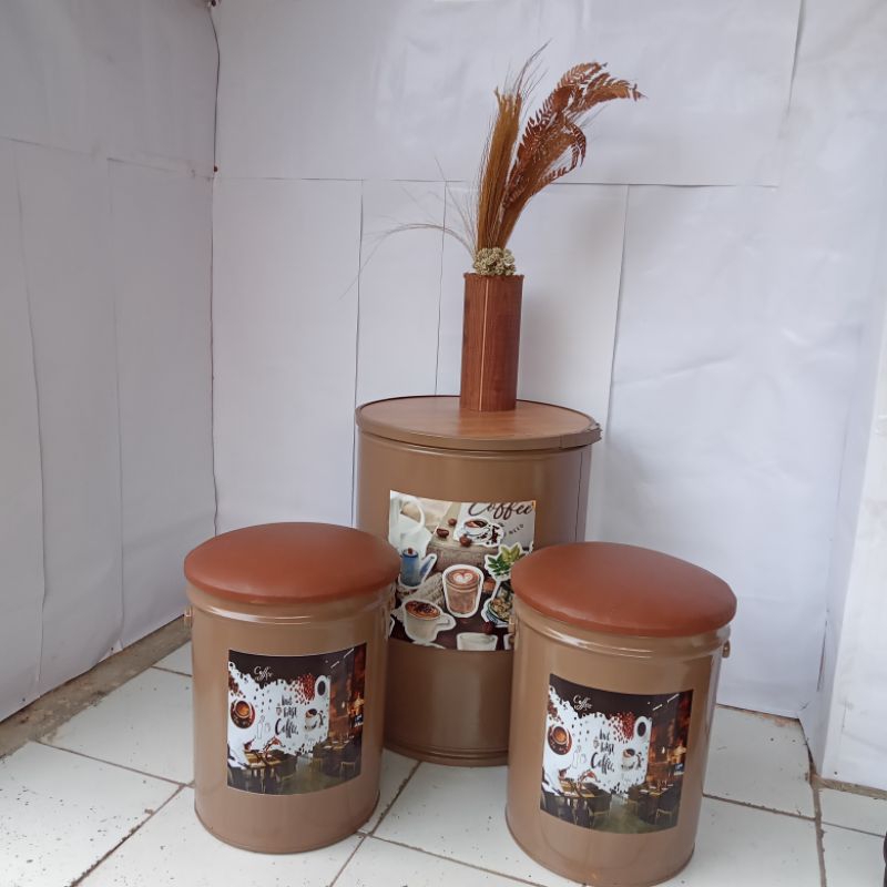Paket 1 Set (2 Bangku+1Meja)Kursi Tong Kaleng Kursi Cafe Kursi Teras