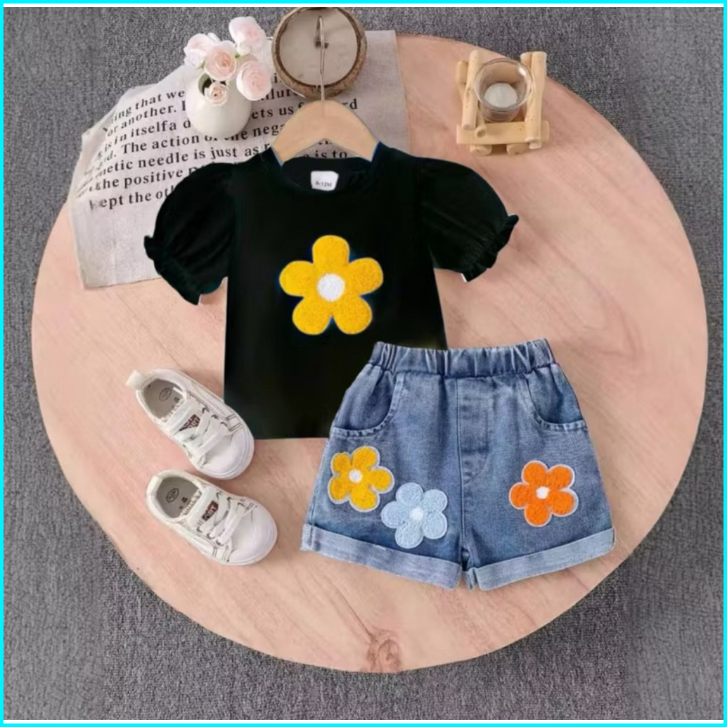 Setelan Anak Baju Anak Perempuan Dan Celana Pendek Anak 1-5 Tahun Motif Flower Ardan Baju Anak