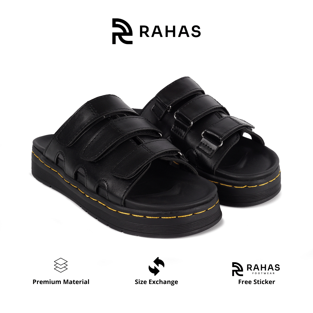 RAHAS - Sandal Slide Kulit Pria Wanita Traveling Sendal Slop Casual Slip On Black