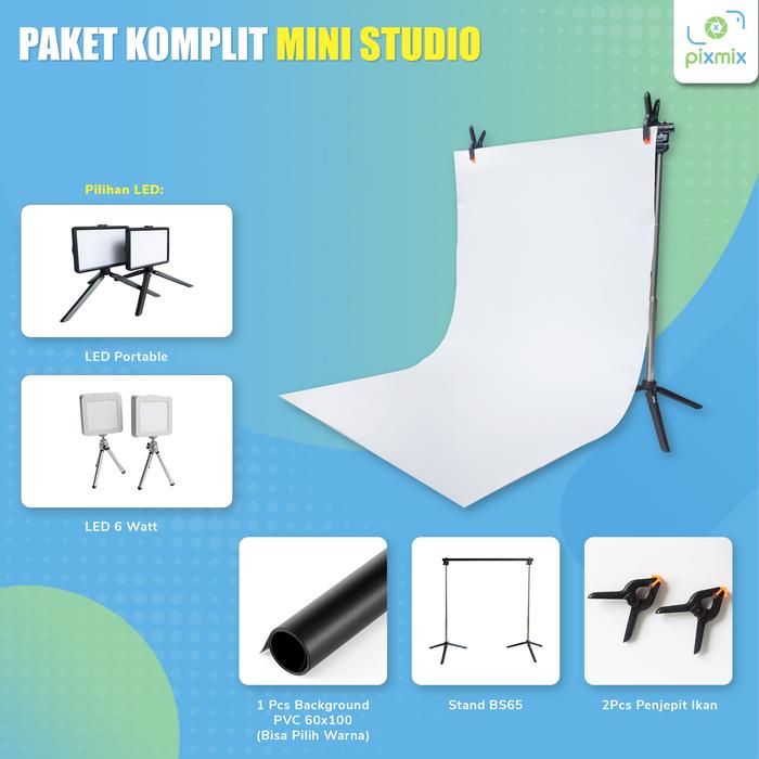 PAKET KOMPLIT MINI STUDIO FOTO - 60 CM BACKGROUND + 6W LAMP + STAND - C1 BLACK