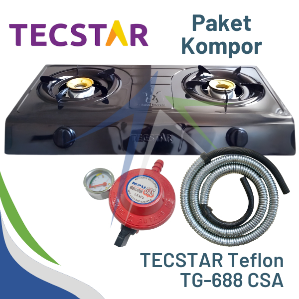 Kompor 2 Tungku Teflon Stainless TECSTAR PAKET + Selang dan Regulator WINN SIAP PAKAI