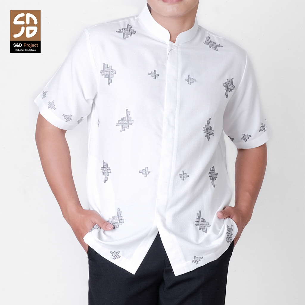 S&D Project Koko Muslim Seri 36 Bordir Polikatun Putih Tulang Jumbo M-4Xl Pria Dewasa Lengan Pendek