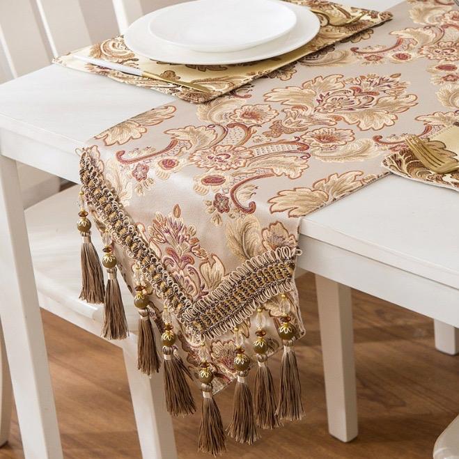 TABLE RUNNER BELGIA TURKI PREMIUM | ALAS MEJA TAMU | TAPLAK MEJA KAIN MEWAH DEKORASI RUMAH ELEGANT - MERAH, 33X160CM