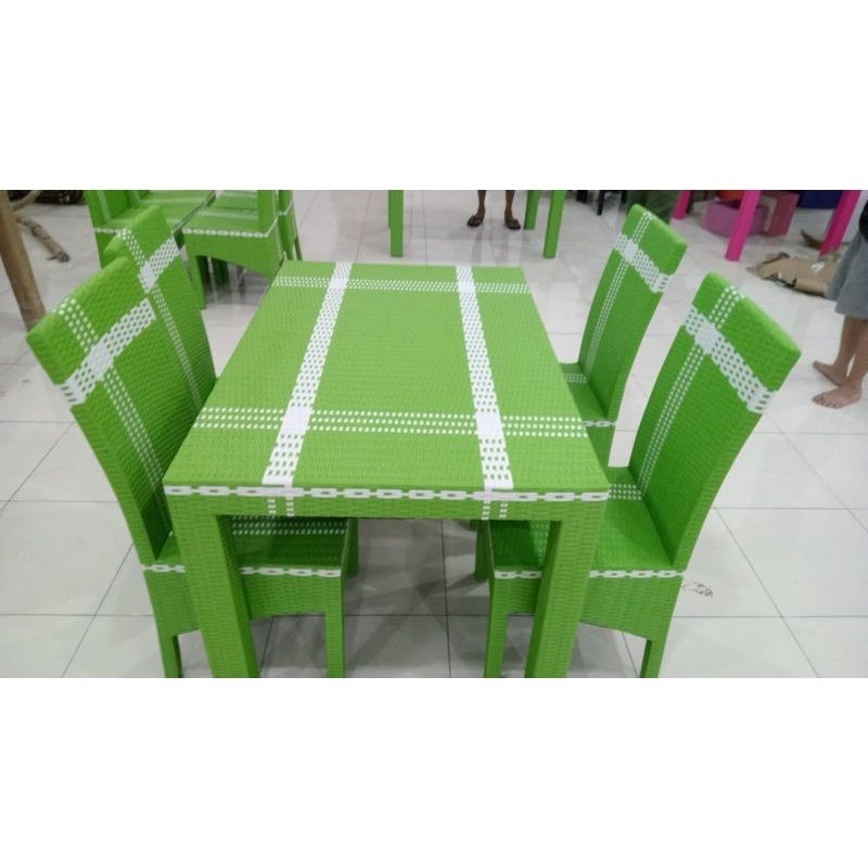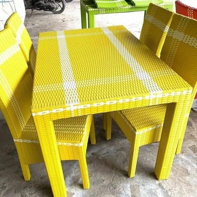 READY STOCK Meja Makan Rotan Sintetis 4 Kursi