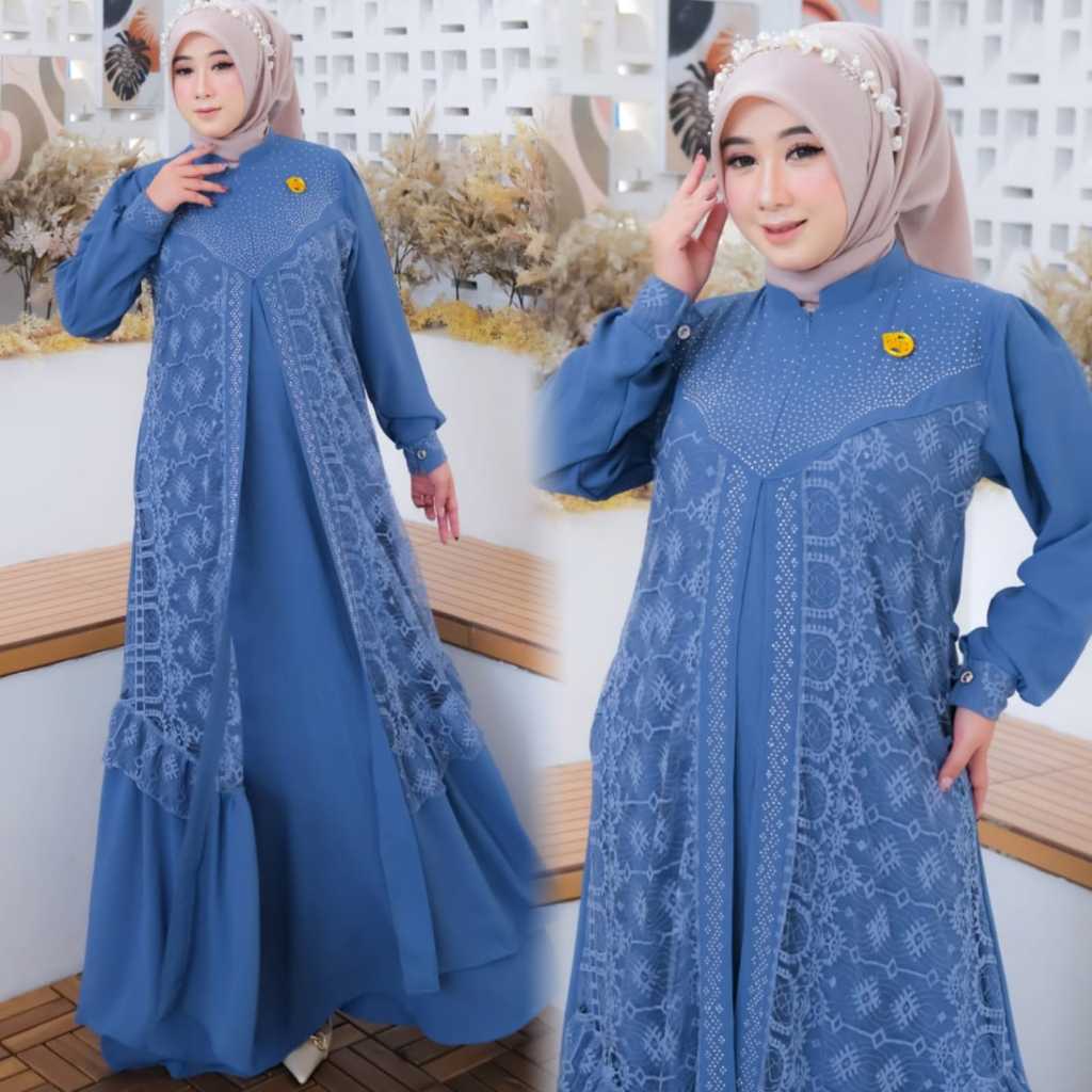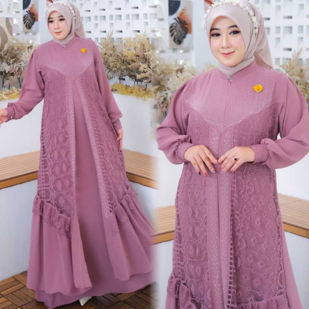 Hijab Pratiwi - Helwa Dress Gamis Cingkel Mix Brukat Mewah Elegant Terbaru untuk Dewasa & Remaja Kekinian Cocok Lebaran Gamis Hari Raya