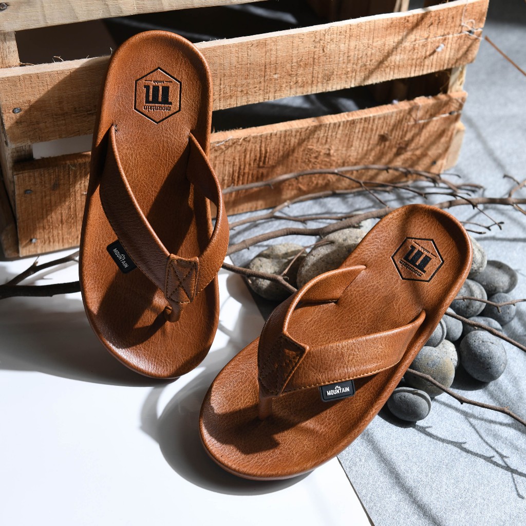 Mountain Sandal Pria Jepit Kulit PU Tan Sendal Terbaru Kekinian 03