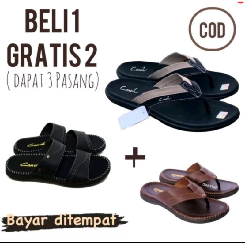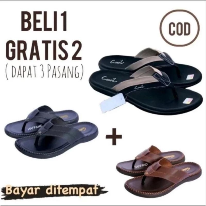 Super Promo Beli 1 Gratis 2 Pasang Sandal Kulit/Sandal Pria/Sandal Casual Pria