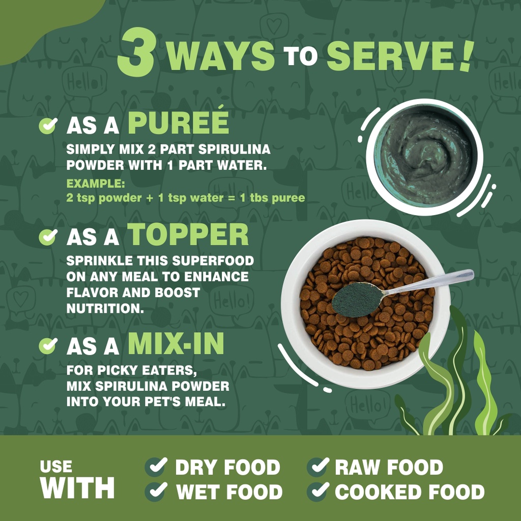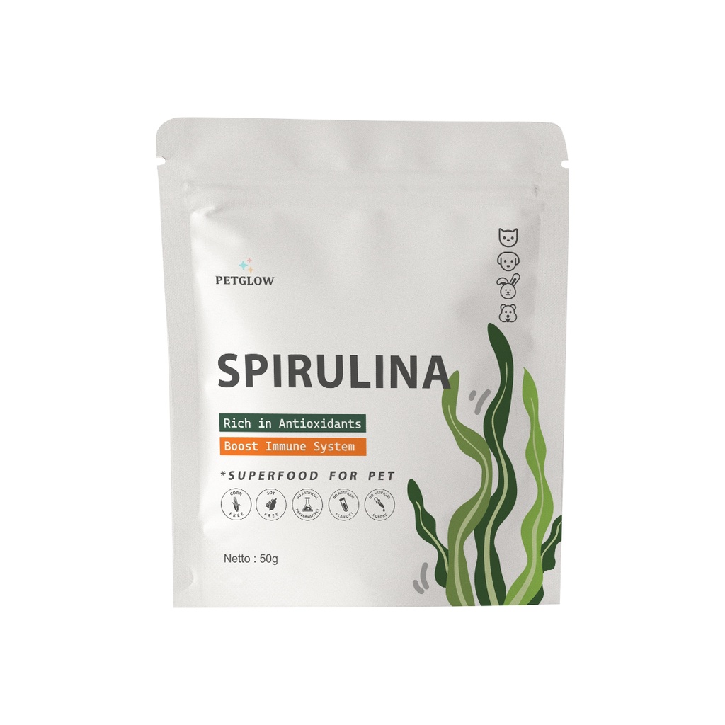 Petglow Superfood Spirulina Powder For Pet Vitamin Kucing Bulu Panjang Lebat Halus Rontok untuk Anjing Kucing Hamster Ke