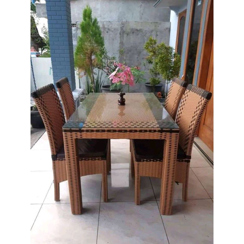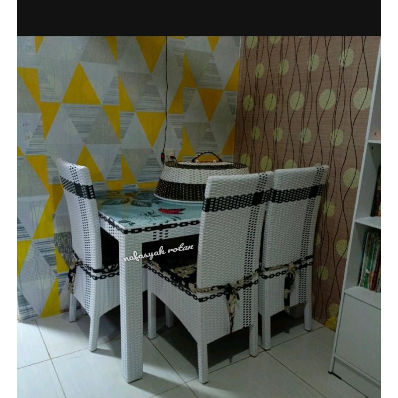 Set Lengkap Meja Makan 4 Kursi Rotan Sintetis