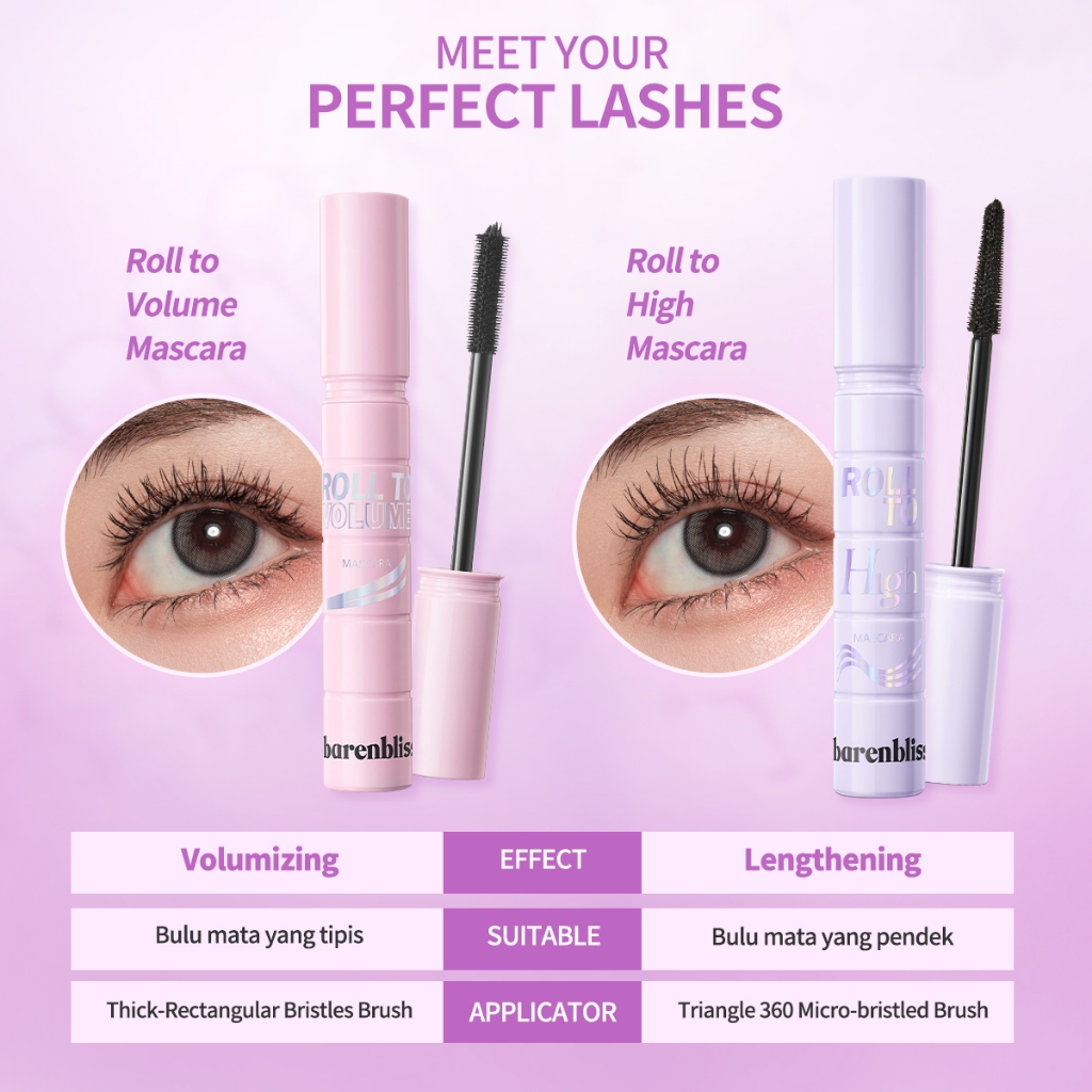 BNB barenbliss Roll To Volume & Roll To High Mascara 8g Maskara Tahan 24 Jam Volumizing Lengthening Waterproof Smudgepro