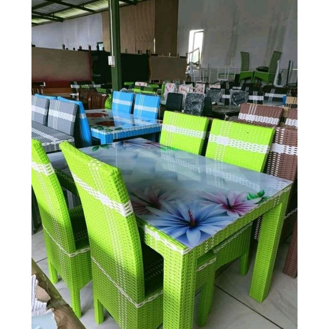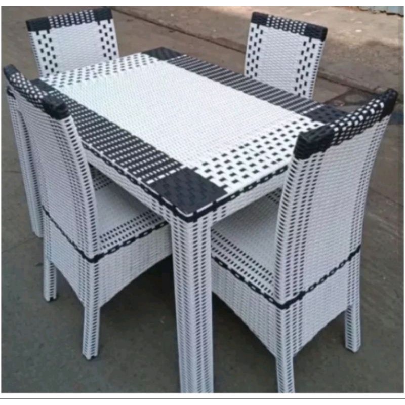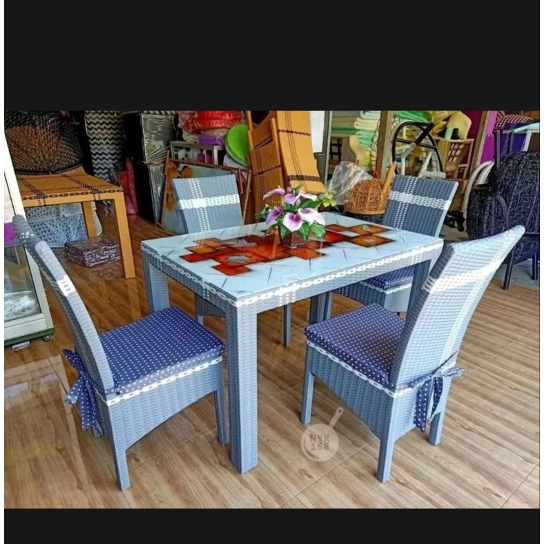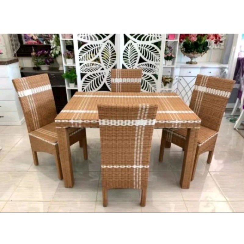 ( Ready Stok)Meja Makan Minimalis Set 4 Kursi Rotan Sintetis Murah Free Bantal