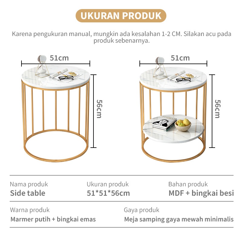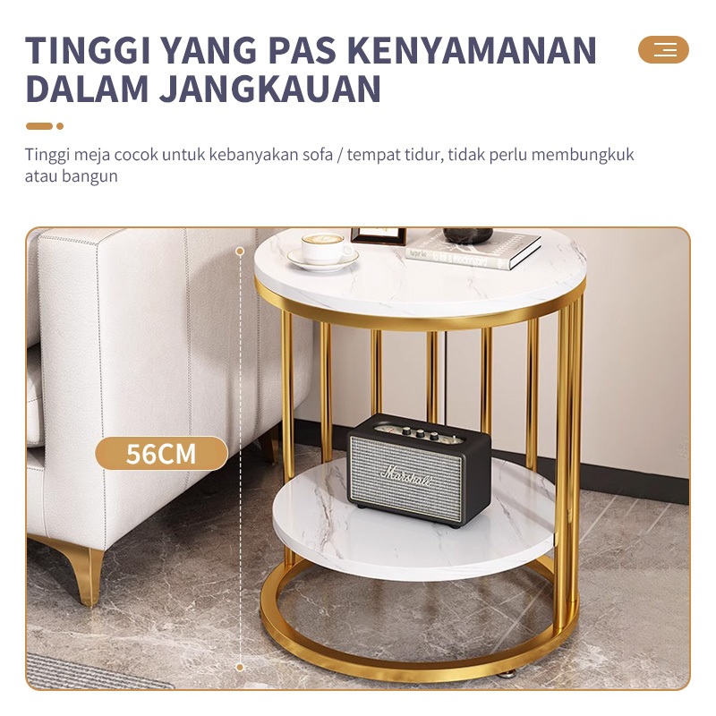 Meja Sudut cofee table Meja Ruang Tamu Minimalis Lapisan Ganda Meja samping sudut marmer Meja Ruang Sudut Aesthetic Meja Marmer Putih Meja Cafe Meja bulat minimalist kaki besi