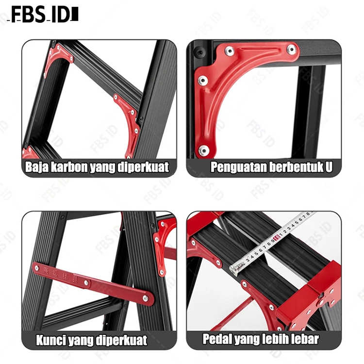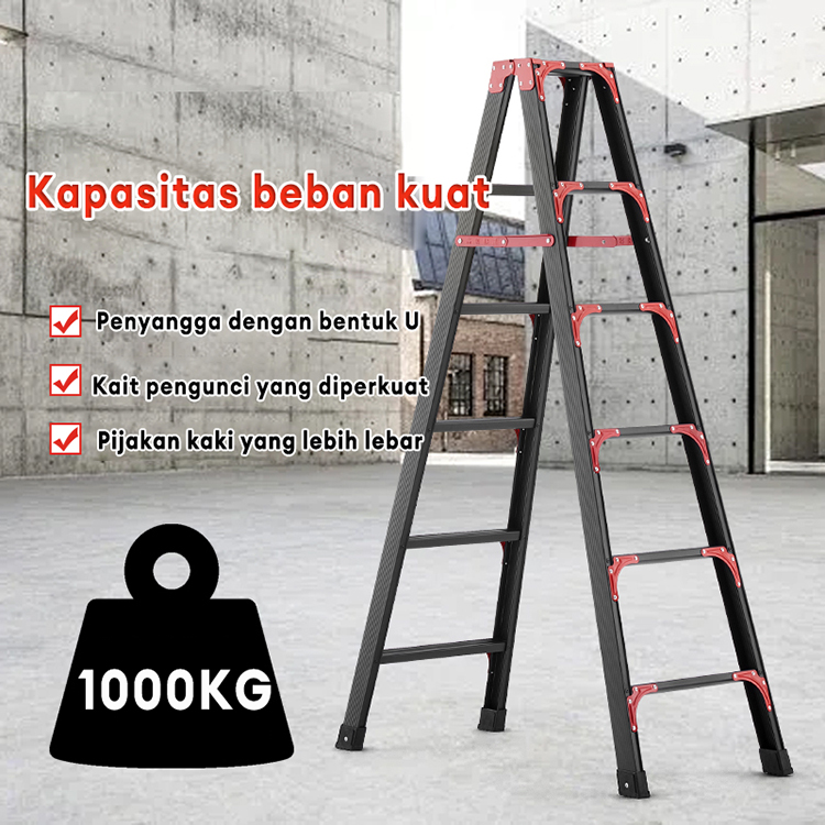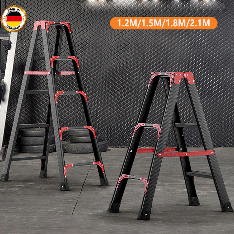 Reaim Tangga Lipat Aluminium Portabel 1.2/1.5/1.8/2.1Meter Kokoh Tebal Kuat Hitam Multifunction Household Ladder