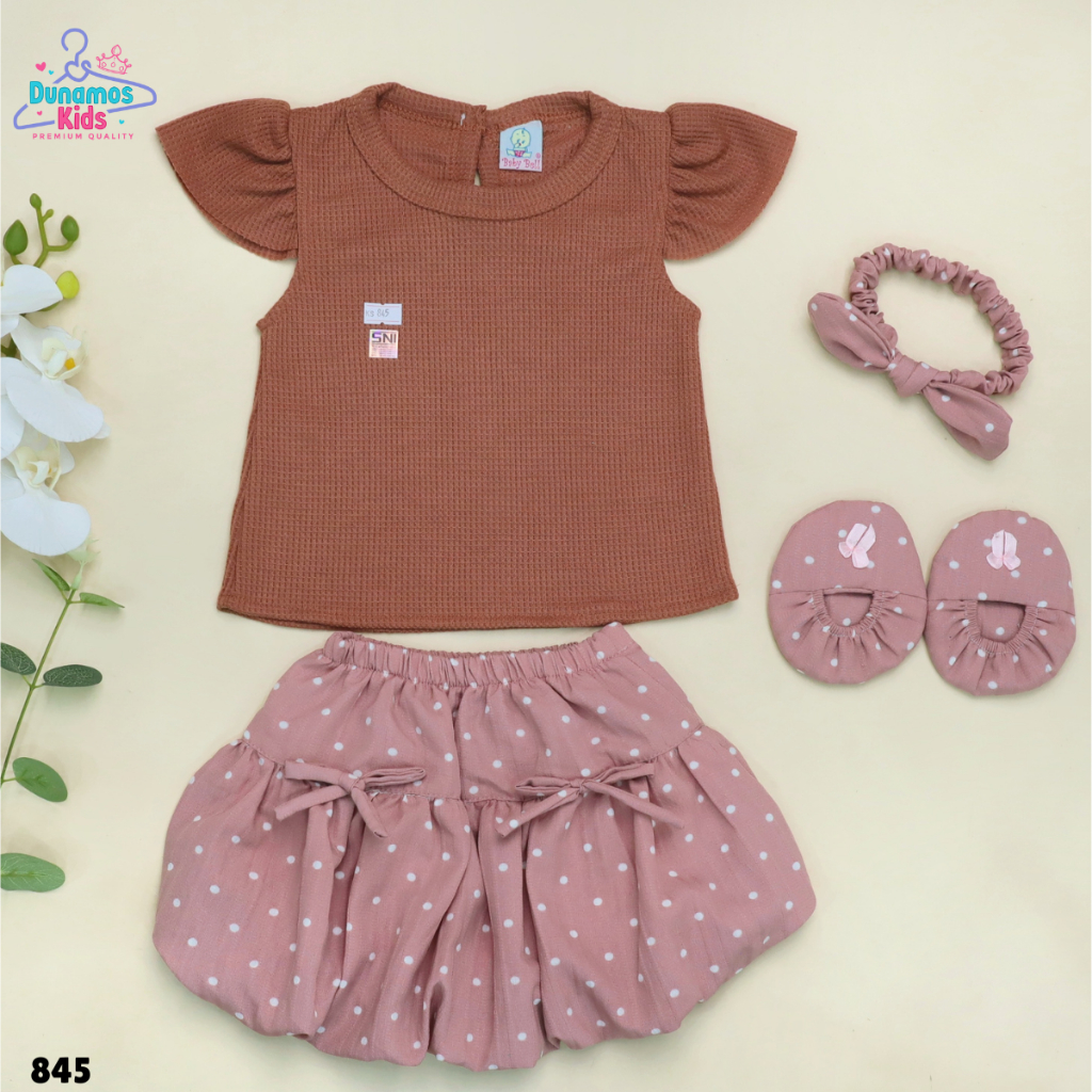 Baju Bayi Perempuan Setelan Rok Balon Usia 3 - 9 Bulan
