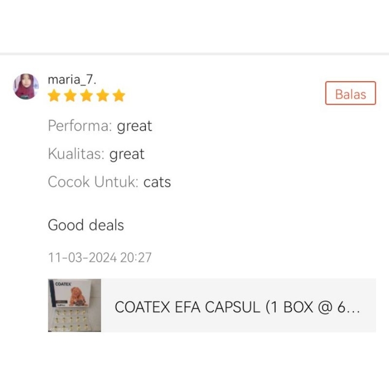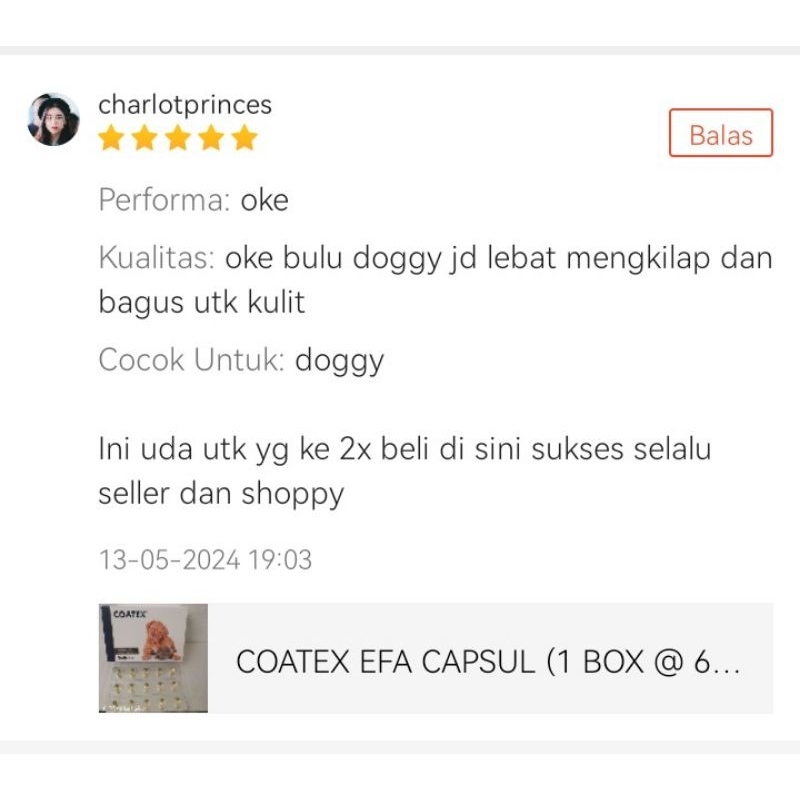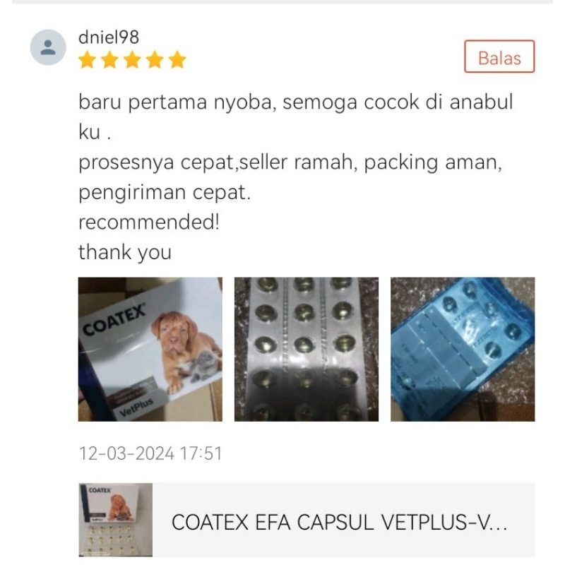 COATEX EFA CAPSUL (1 STRIP 15 CAPSUL)-VETPLUS COATEX EFA CAPSUL (1 STRIP 15 CAPSUL)-MINYAK IKAN OMEGA 3 UNTUK KUCING