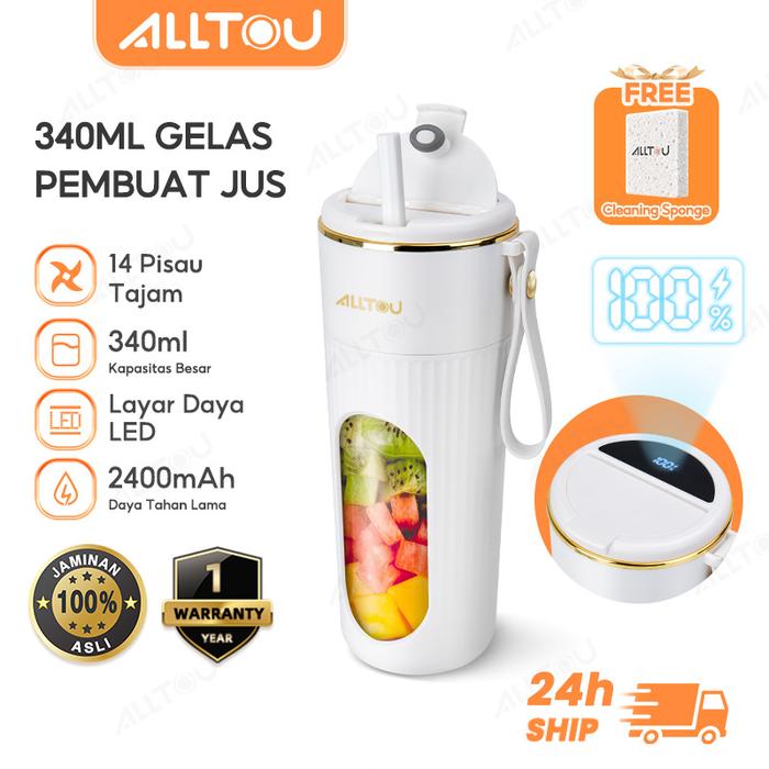 ALLTOU Blender Portable Mini 14 - Juicer 450mL Rechargeable Jus Blender 2400mAh Mixer Baterai Kabel Merah - Putih