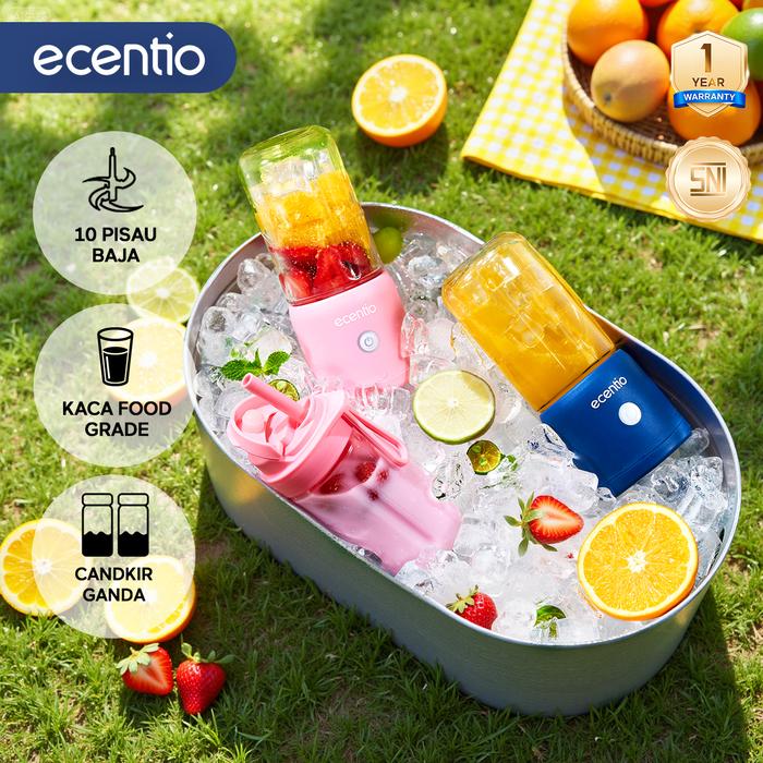 ecentio juicer blender 10 - juicer Kaca Tebal 2 Cup mini portable dengan sedotan 380ml+380ml - Merah Muda