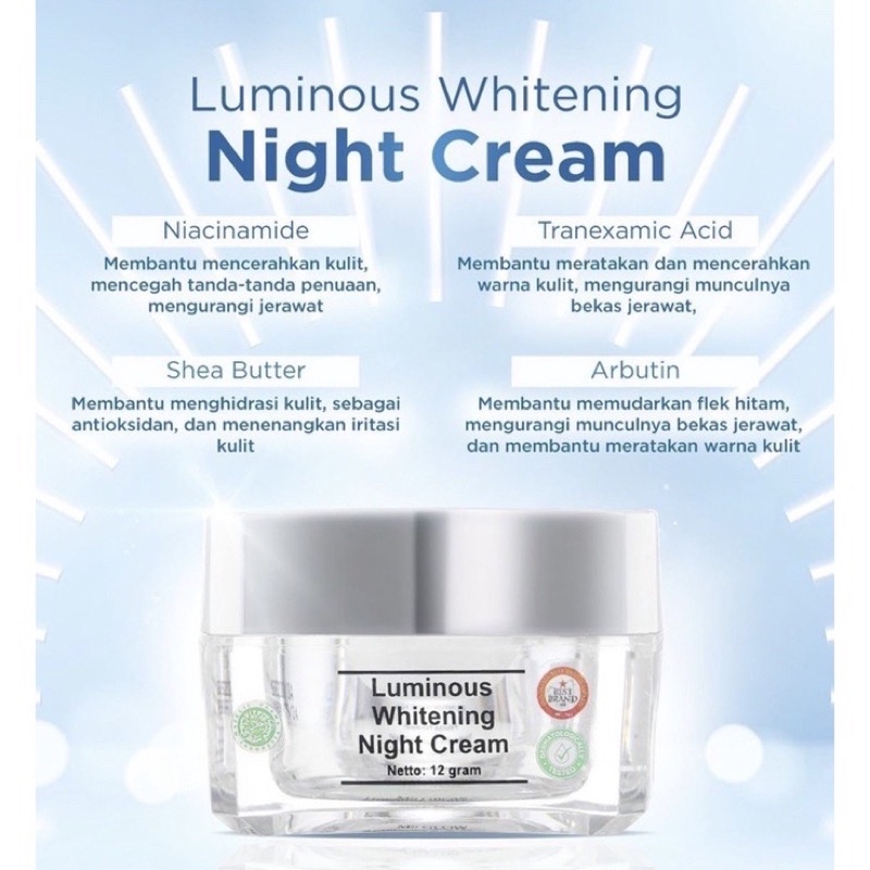 WHITENING NIGHTCREAM, ACNE NIGHT CREAM, ULTIMATE NIGHT CREAM, LUMINOUS NIGHT CREAM, WHITE CELL DNA (WCD)