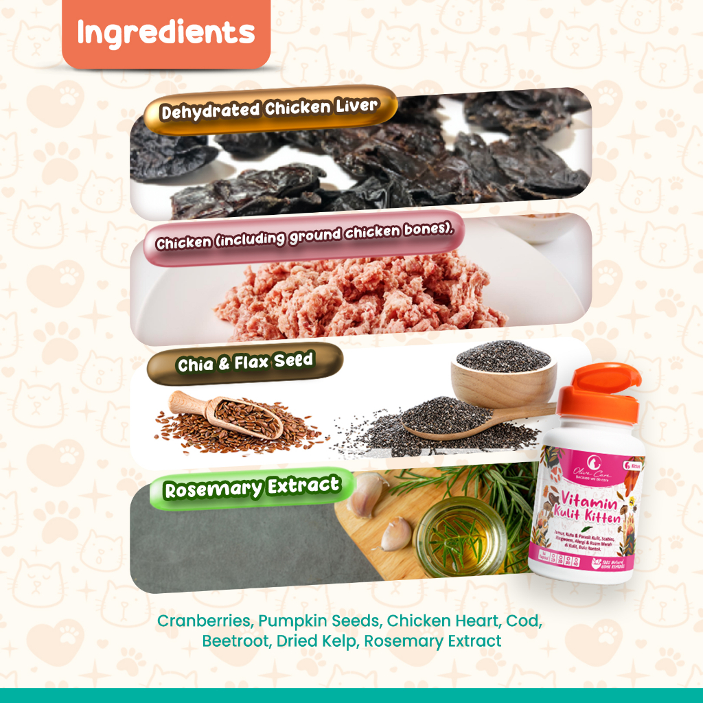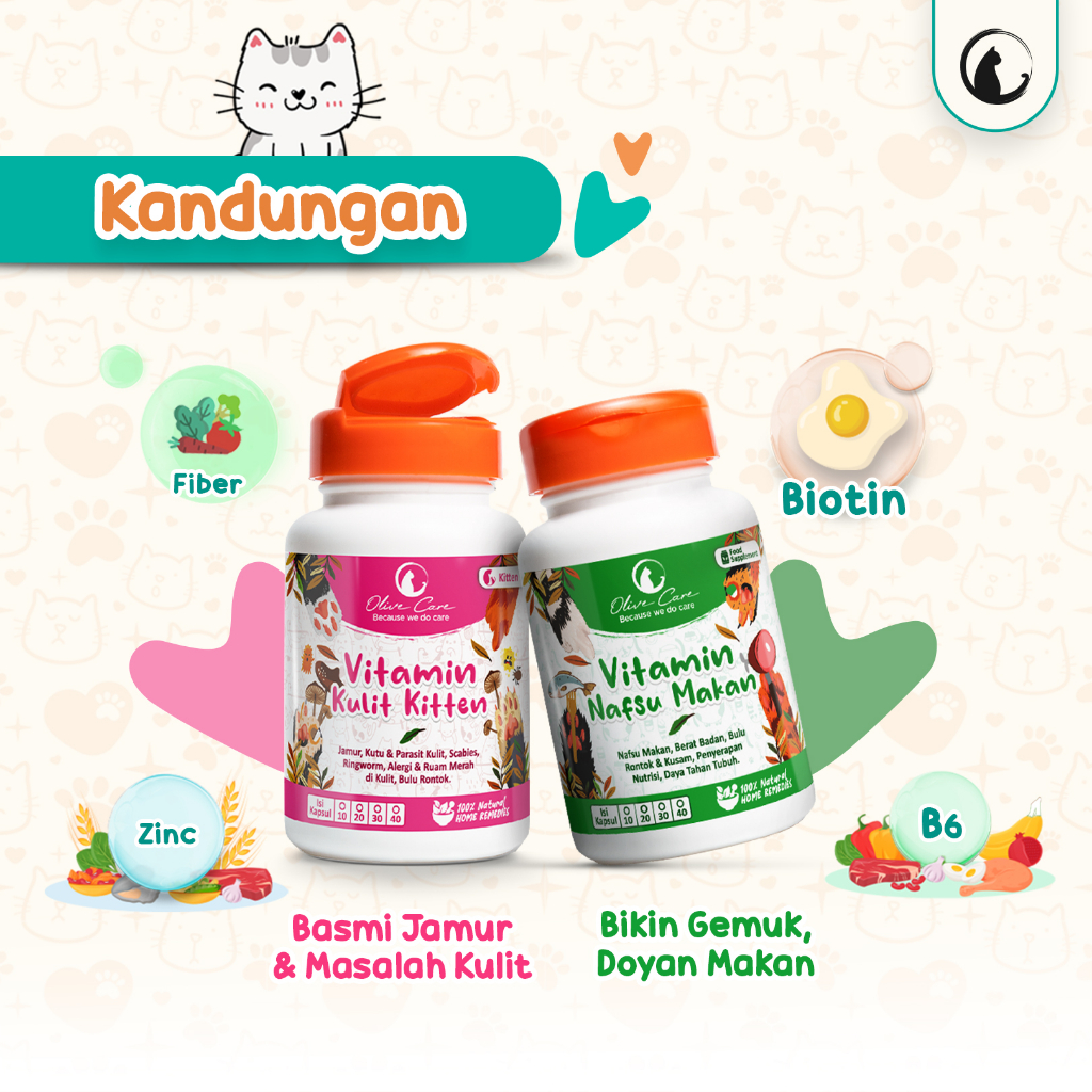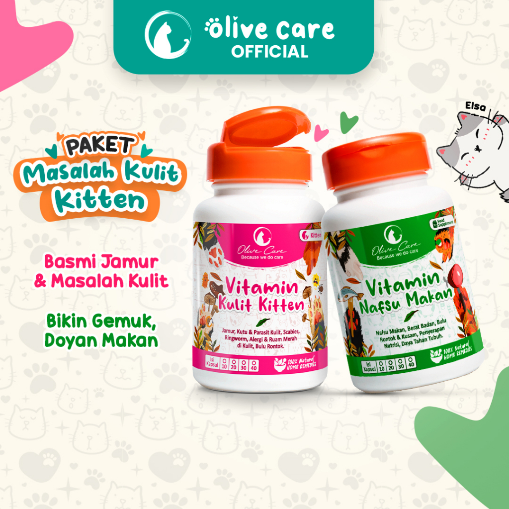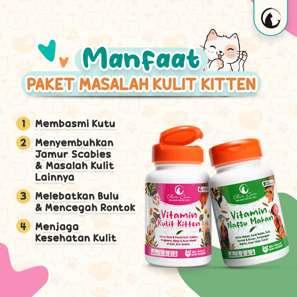 Olive Care Vitamin Kucing Paket GEMBUL & MASALAH KULIT KITTEN Nafsu Makan, Bulu Rontok, Jamur, Kutu, Scabies, Ringworm d