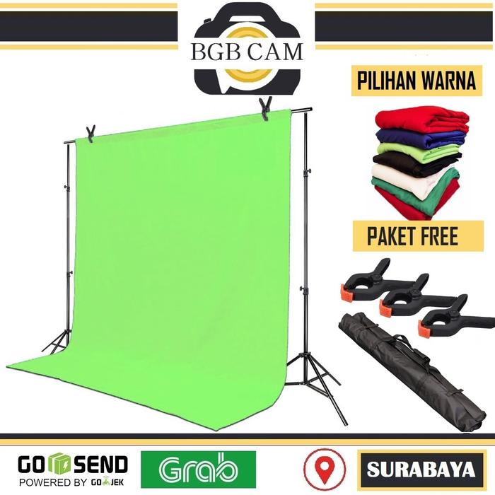 STAND BACKGROUND FOTO 3 METER PHOTO STUDIO KAIN POLOS GREEN SCREEN - HIJAU