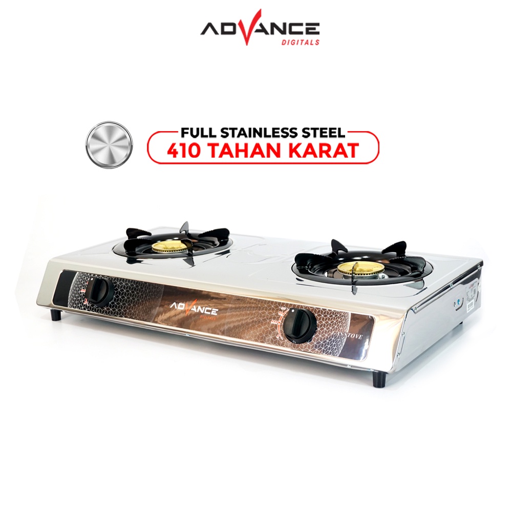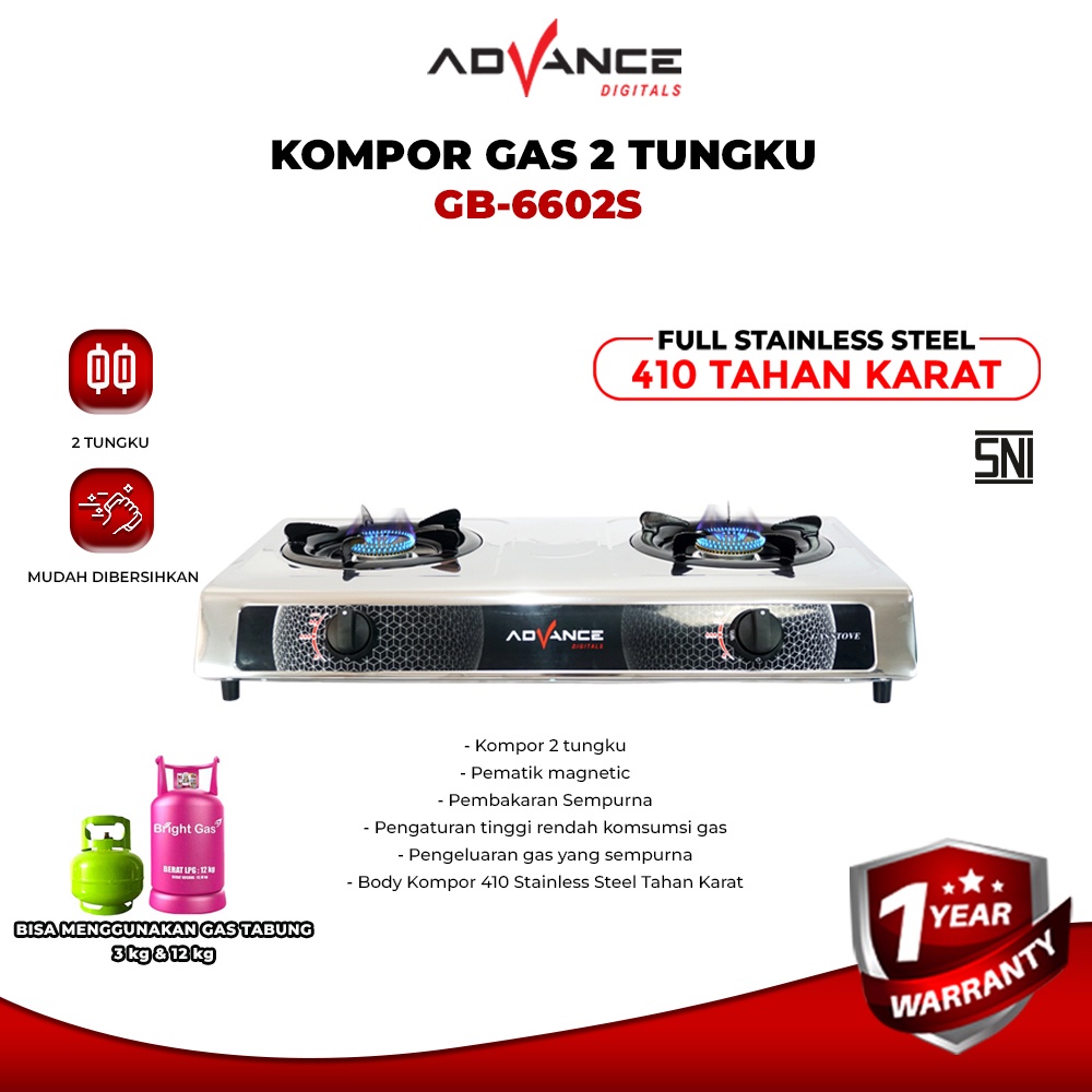 Kompor Advance 2 Tungku GB6602S Body Full Stainless Steel kompor Biru