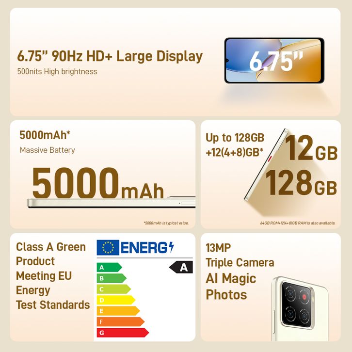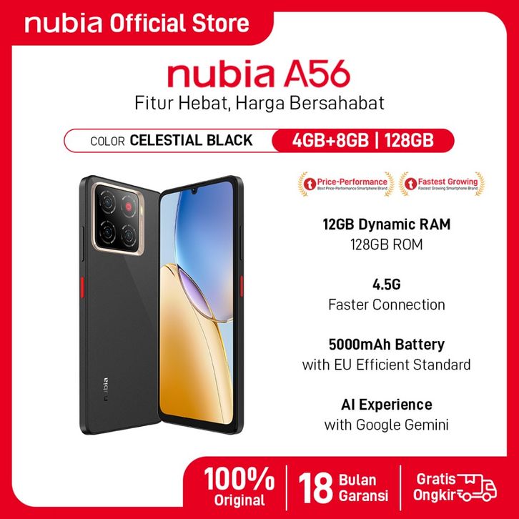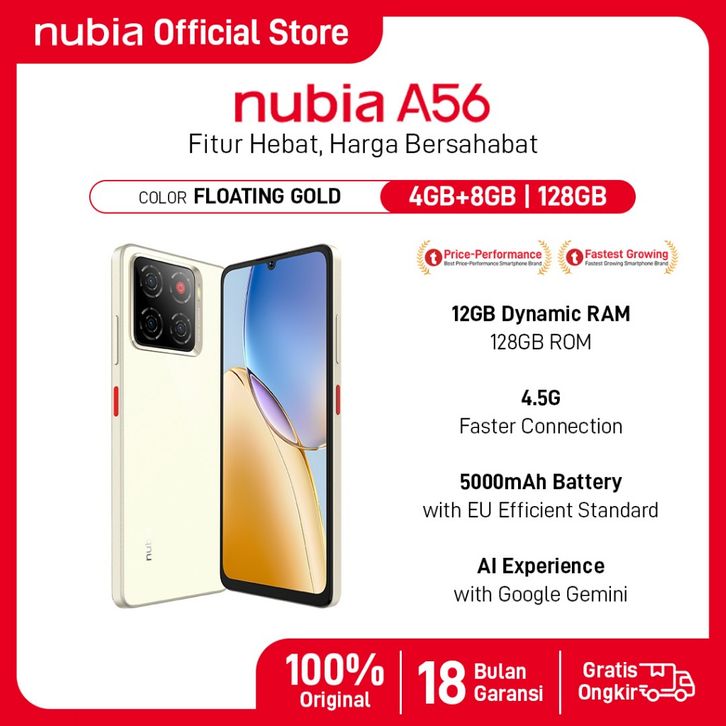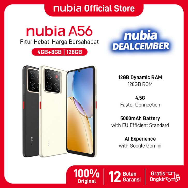 Handphone nubia A56 ROM 128GB RAM 12GB (4+8GB) Smartphone Kamera AI 13MP Triple Camera Layar 6.75" 90Hz, Baterai
