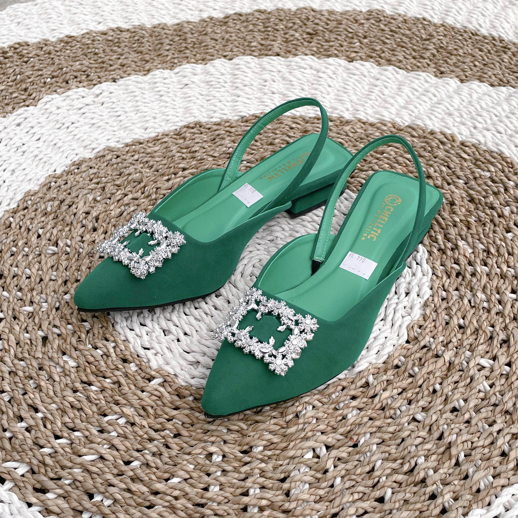 GALAXY Sepatu Flat Slip On Mules Wanita Hak Tahu 2cm Terbaru|Sepatu Pesta Wanita Casual Manik-Manik B ZR 044