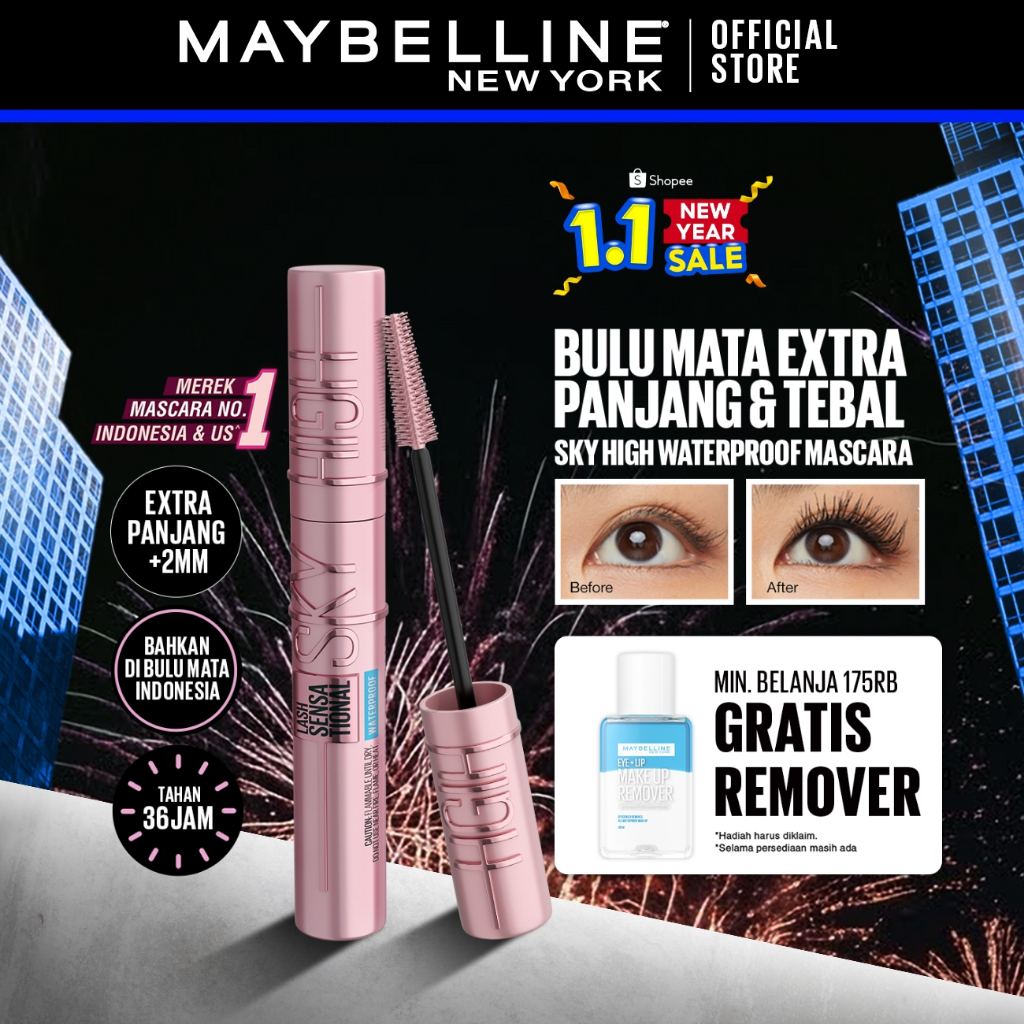 Maybelline Sky High Waterproof Mascara 6ml Maskara Eye Make up Black Bulu Mata Panjang Tebal Tahan 24 Jam Hypercurl Supe