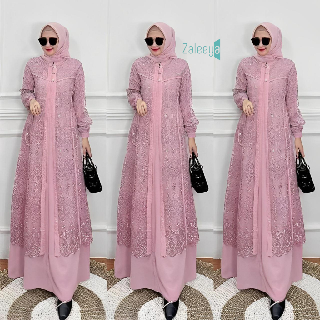 Hayya Dress / New Brukat / Gamis Muslim Dress Crinkle Mix Brukat Hayya Dress Gamis Pesta Mewah