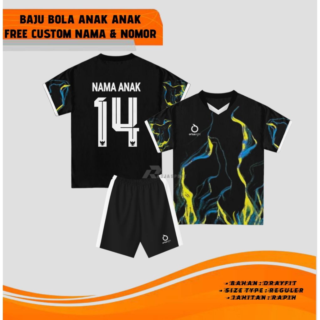 SETELAN BAJU JERSEY BOLA FUTSAL ANAK GRATIS SABLON NAMA DAN NOMOR PUNGGUNG