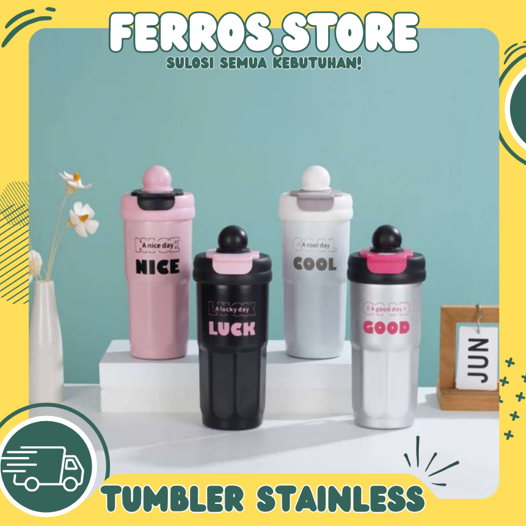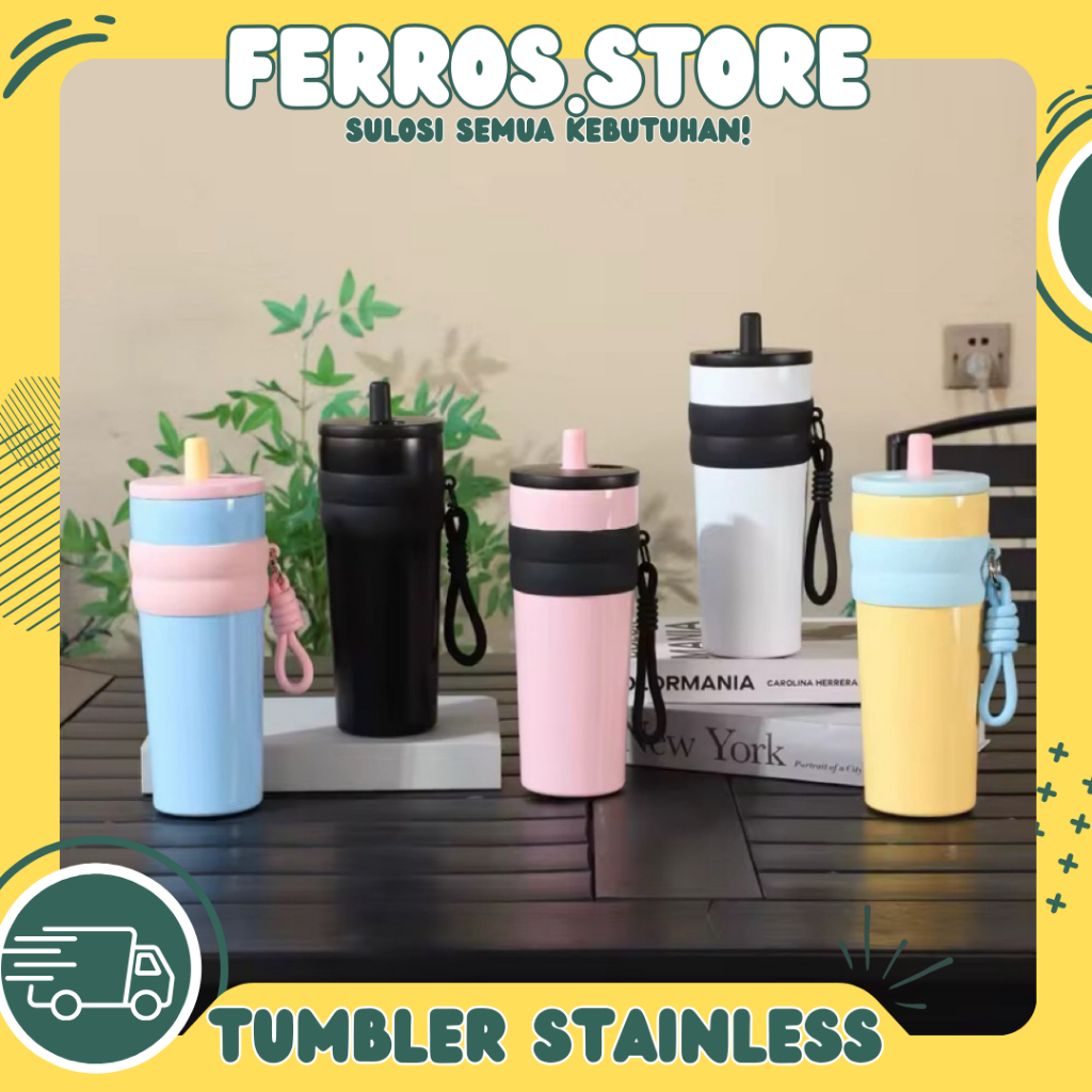 Ferros.Store Tumbler Stainless SUS 316 Free Sedotan Gantungan/Tumbler Pattern 2IN1 Dua Cara Minum