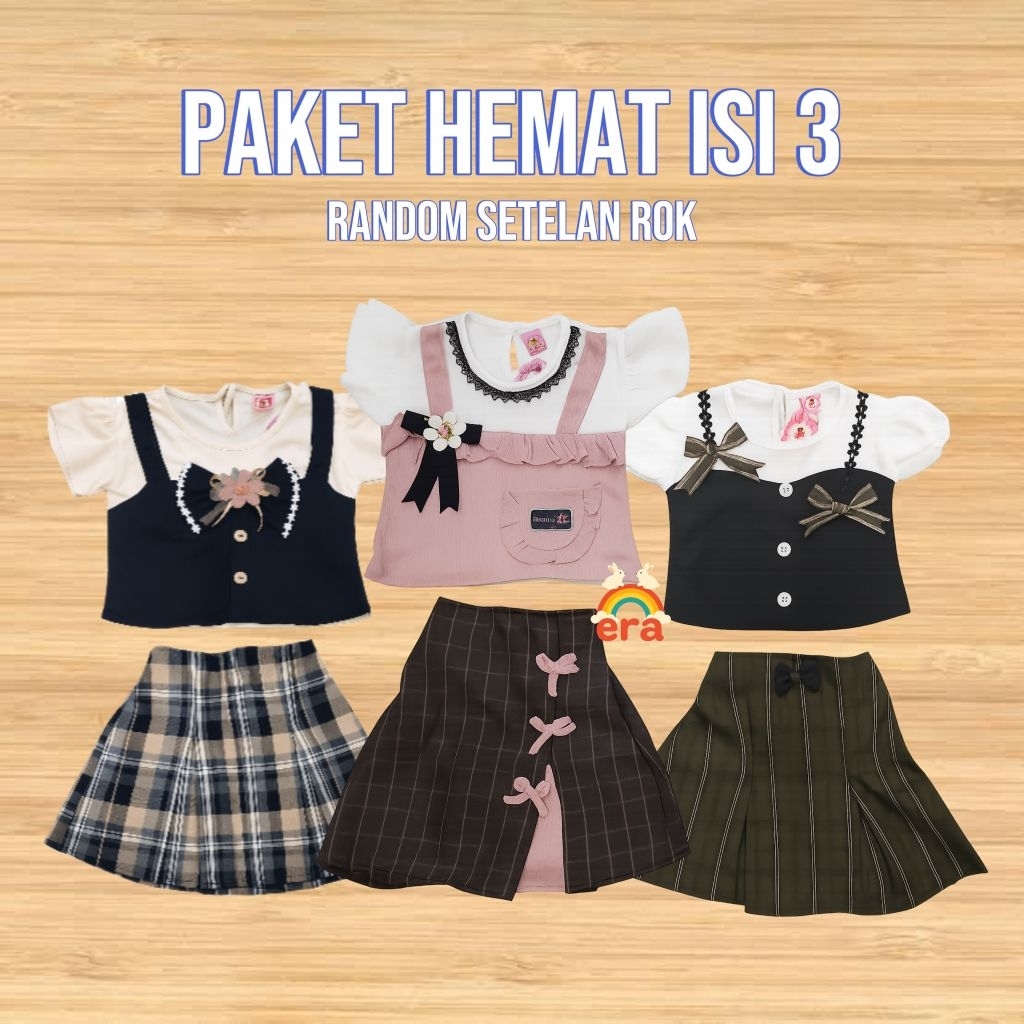 ERA BABY - Paket Hemat Isi 3 Setelan Rok Kotak Bayi Anak Cewek Perempuan Fashion 2-3 tahun