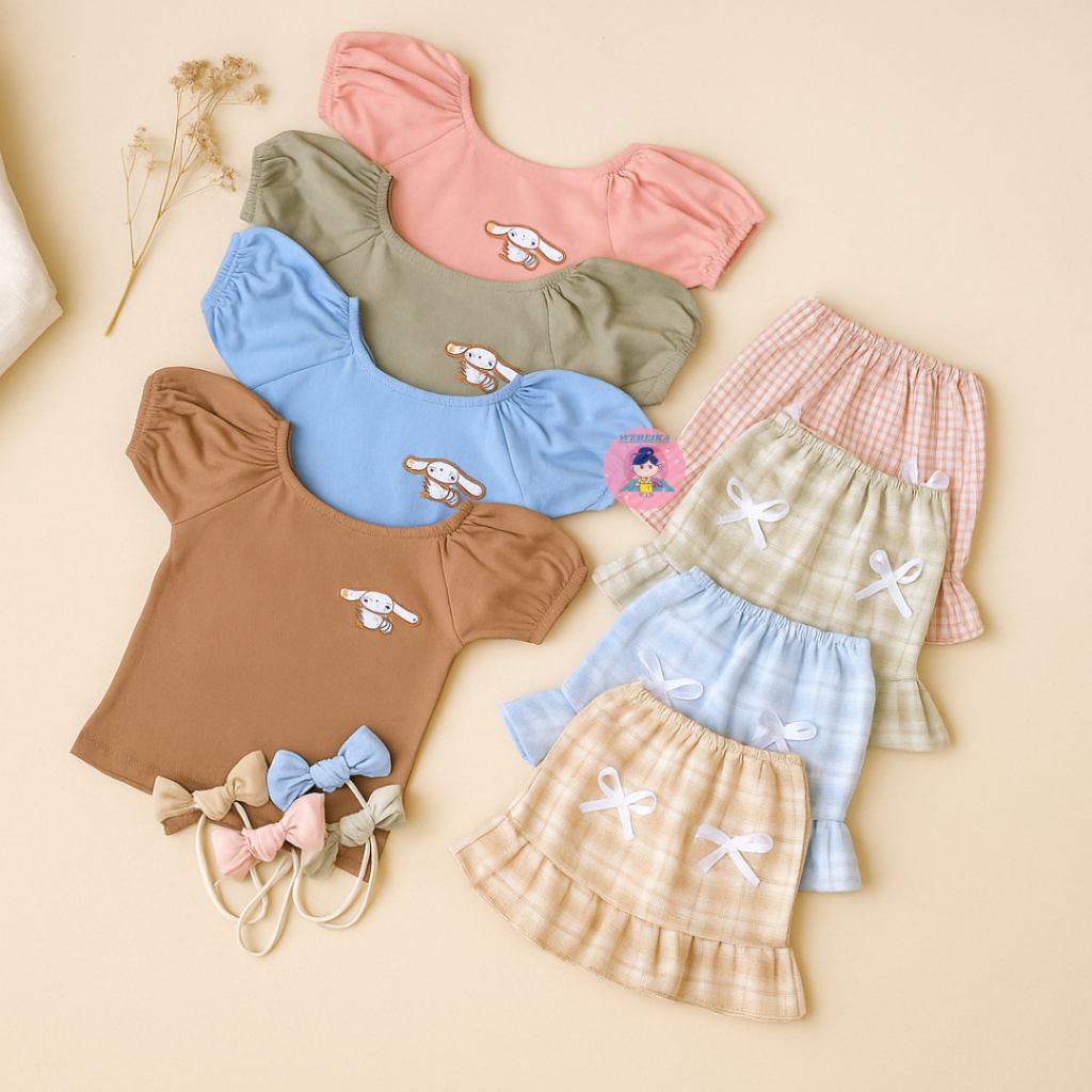 WEREIKA - CINAMORO Setelan Rok Anak perempuan bayi lucu free headband BUBIBEE